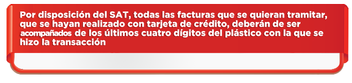 En caso de seleccionar el metodo de pago tarjeta se tendra que capturar los ultimos 4 digitos de la tarjeta
